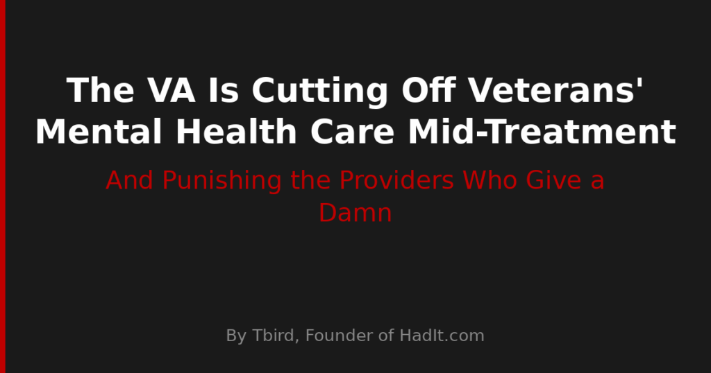 VA hospitals nationwide are enforcing arbitrary therapy session limits—cutting veterans off from mental health care regardless of clinical need. Providers who object face disciplinary action. This policy existed before, but enforcement became “draconian” under VA Secretary Doug Collins. Veterans with complex PTSD are being abandoned mid-treatment while the VA denies it’s happening. Mental health providers are quitting in disgust, worsening an already severe staffing crisis. The American Psychological Association is investigating. This is rationing disguised as “evidence-based care”—and it’s killing veterans.