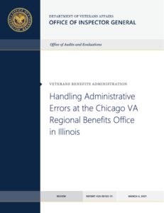 OIG substantiated the allegation that Chicago VA regional benefits office employees did not follow VBA procedures when correcting administrative errors. Veterans are not responsible for